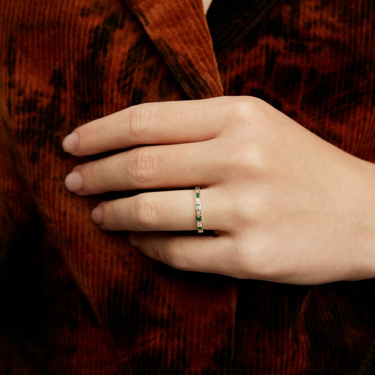 Oro amarillo, esmeraldas y diamantes se complementan en este anillo de la colección Great Three, una joya sofisticada que dará el toque de color a tus looks más especiales. Todas las gemas y perlas de esta colección son naturales. Cada una es totalmente única, por eso su tonalidad puede variar respecto a la imagen de referencia.