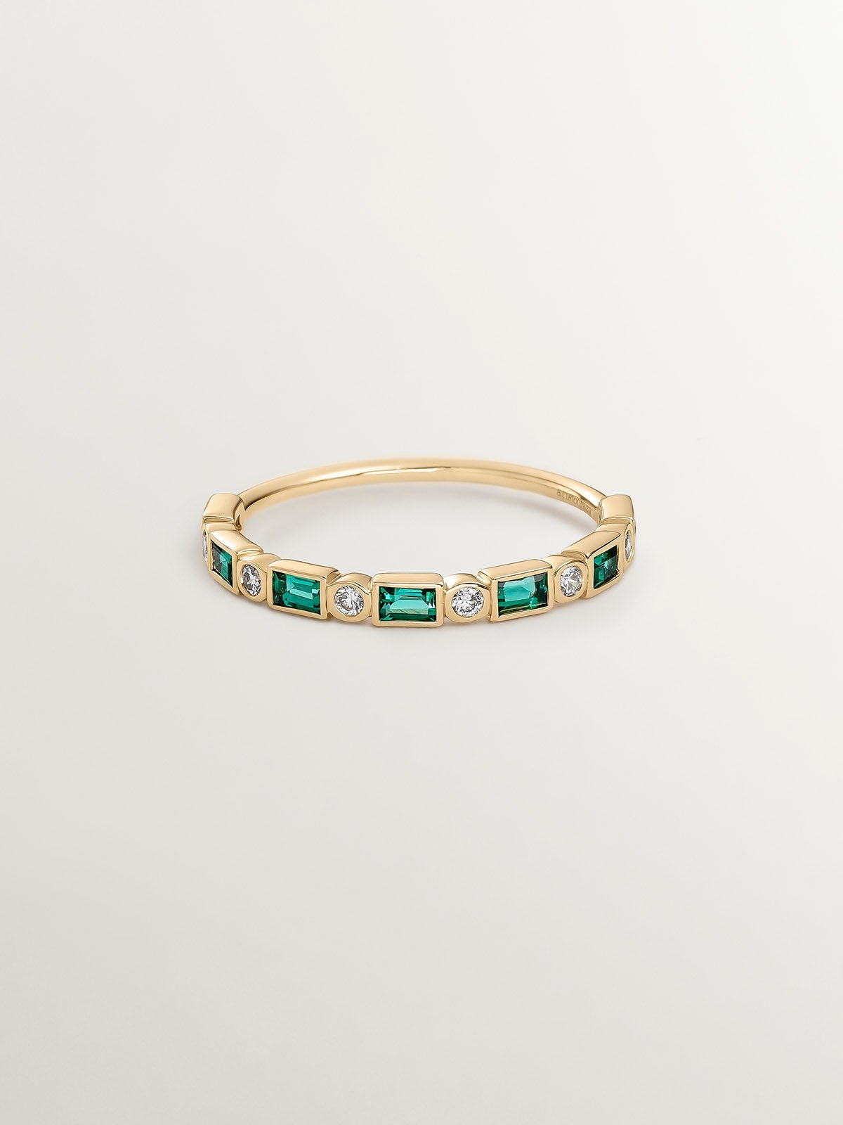 Anillo de oro amarillo de 9K con esmeraldas verdes y diamantes