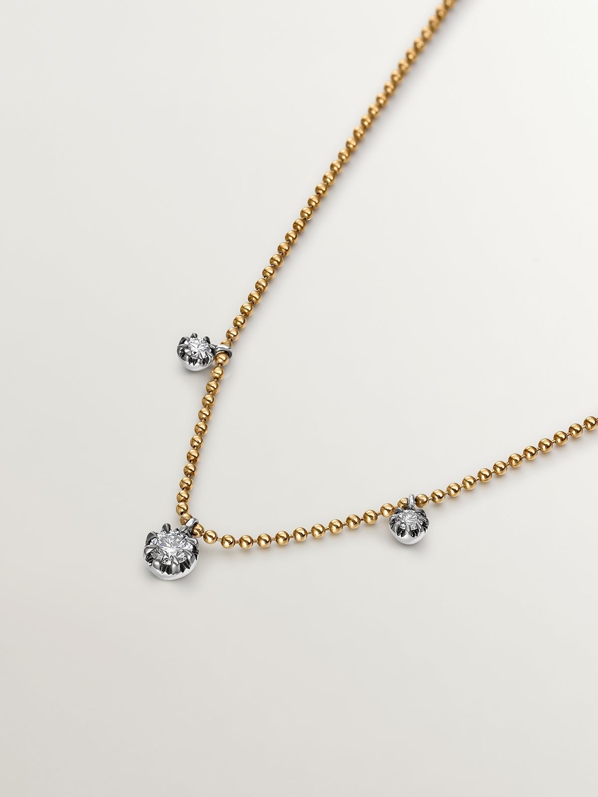 Collar de oro amarillo de 18K con efecto envejecido y diamantes en talla brillante